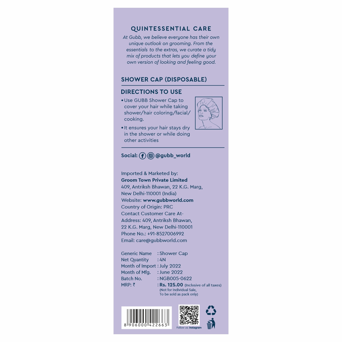 Stay protected and dry with the GUBB Disposable Shower Caps, a convenient and hygienic solution for keeping your hair dry during showers, baths, and other activities. This pack includes four high-quality, disposable shower caps designed for single-use, ensuring maximum cleanliness and convenience. Each cap is made from waterproof material that effectively prevents water from reaching your hair, keeping it dry and styled as you like.