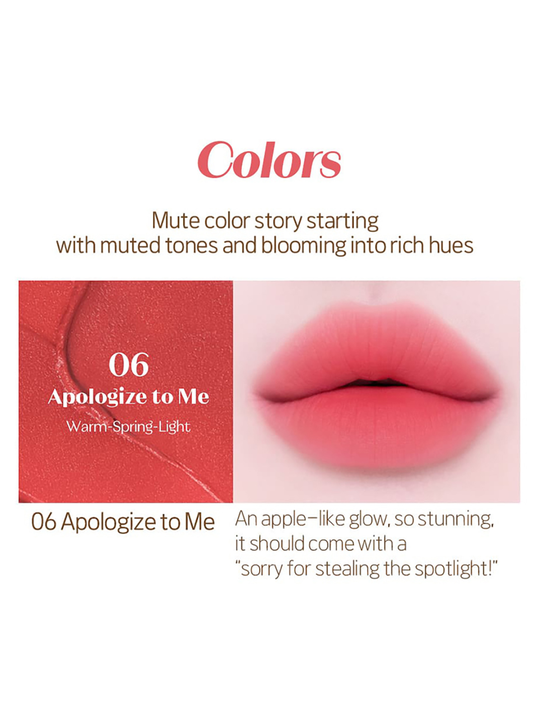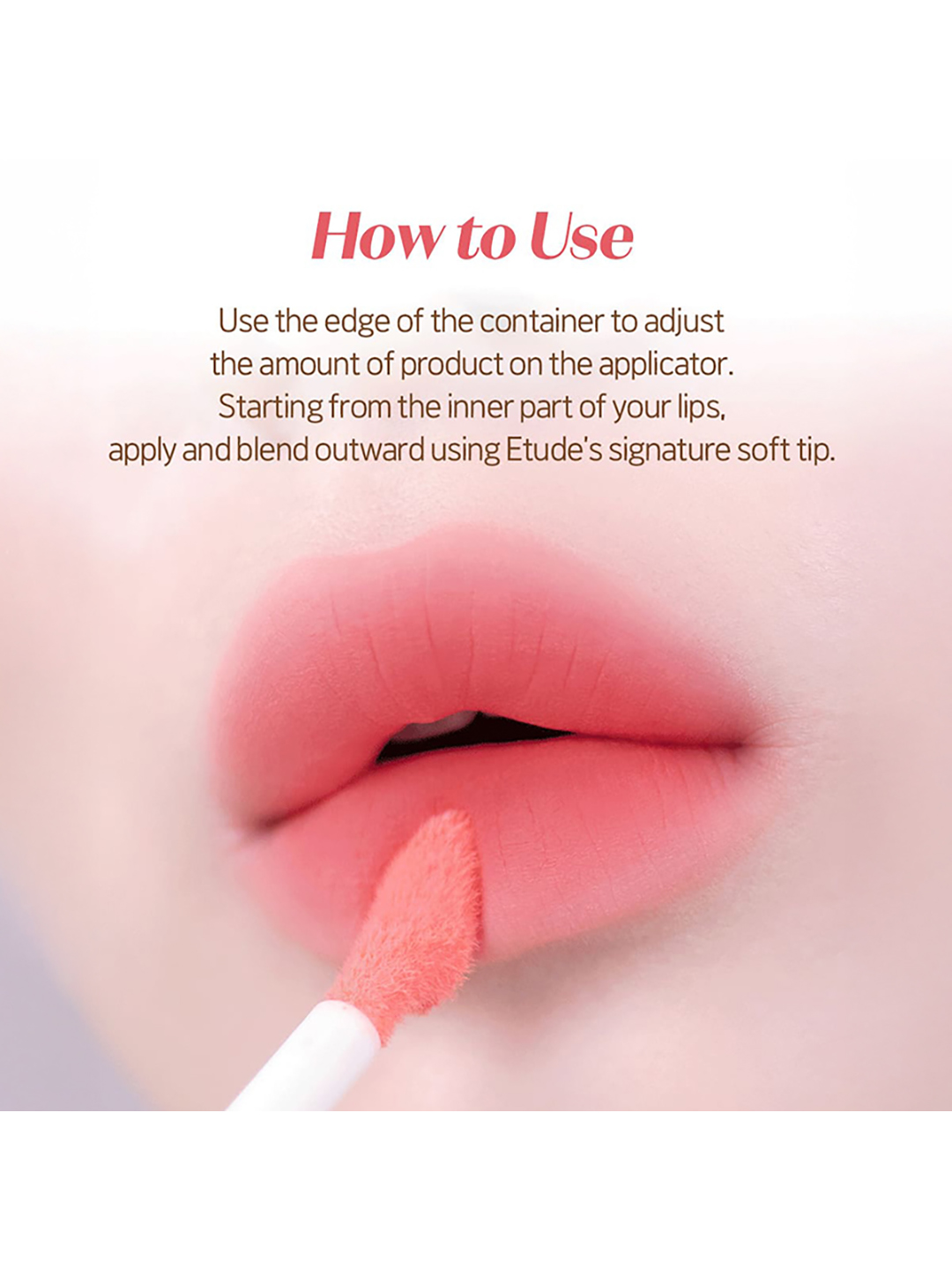 Apply on the entire lips along the lip line or on the center of the lips in a tapping motion to express gradation.