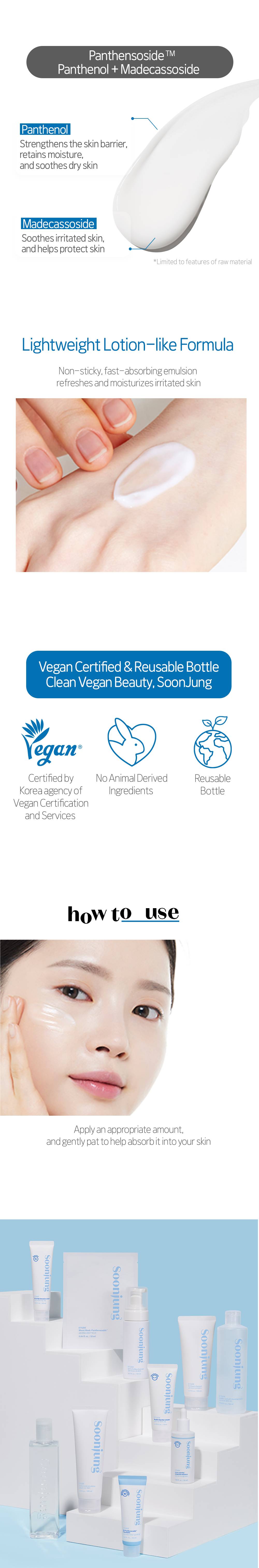 Gently apply an appropriate amount on the face and press the face steadilyto promote absorption into skin.
