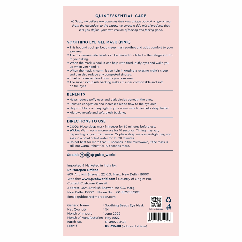 Rejuvenate, depuff and brighten tired eyes with the GUBB Soothing Eye Mask Gel. This eye mask is made from 100% non toxic, hypoallergenic material, and can be used as a sleeping mask while travelling. The mask helps in reducing the appearance of dark circles and puffy eye bags with daily use.