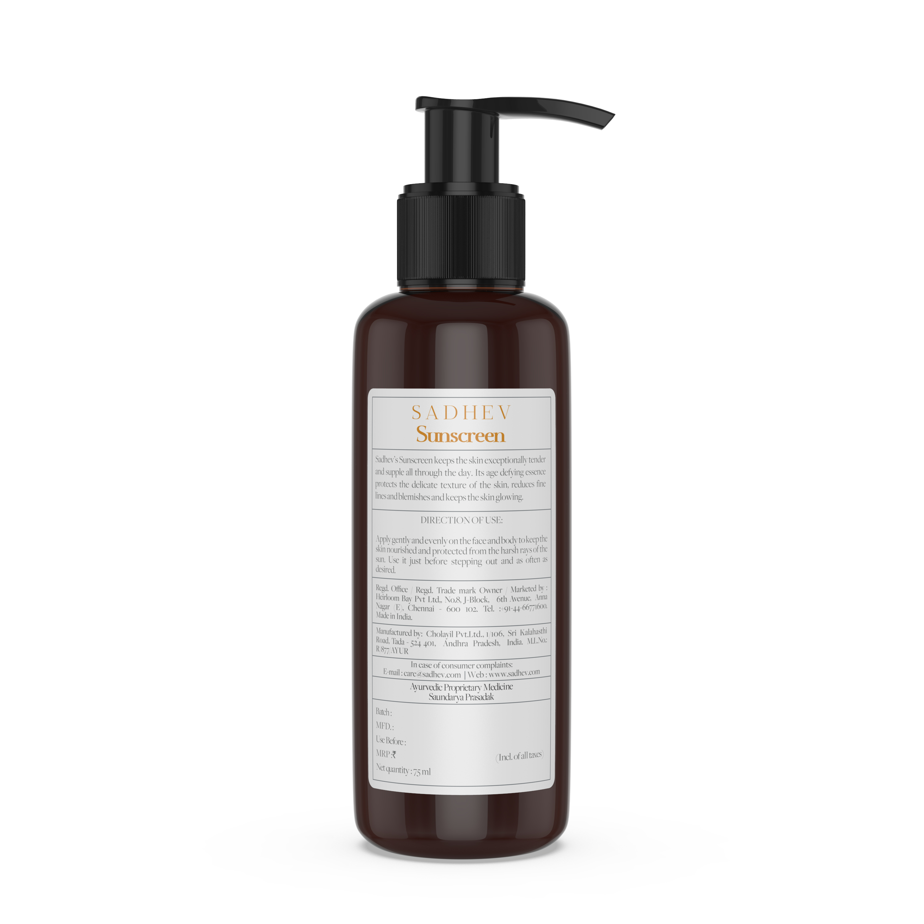 Sadhevs Sunscreen is water resistant and blocks 97% of UVB keeping the skin exceptionally tender and supple all through the day. It avoids leaving a white cast on the skin as it is non-greasy and easy to absorb.