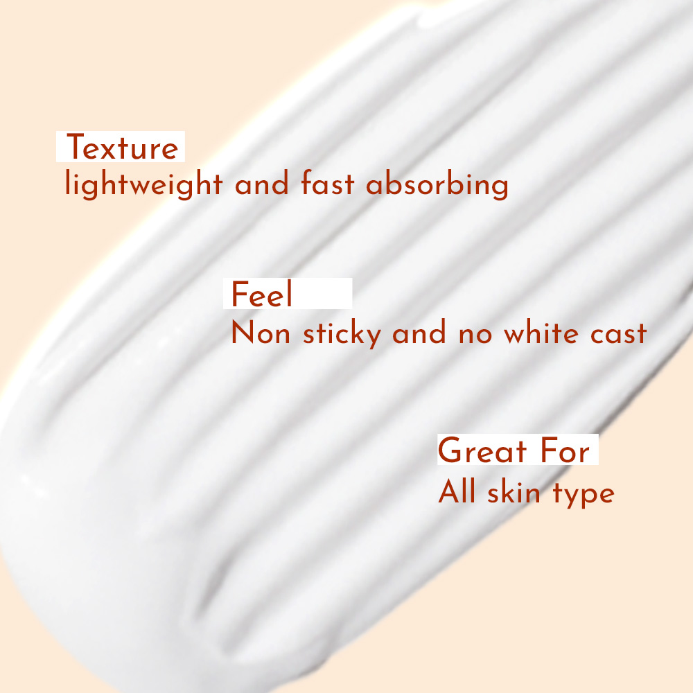 SunShine Sunscreen Lotion SPF 50 PA++++ is formulated in a very lightweight texture which gives comfort and forms a protective antioxidant layer on your skin. This lightweight, non-greasy sunscreen lotion is an everyday SPF50 lotion that gives a cooling effect, absorbs fast and protects against UVA/UVB rays. It is water-resistant, lightweight yet protective enough for outdoor activities with zero white cast or gloopy feel that prevents long-term skin damage and premature aging from the sun. SunShine Lotion is made with sweet summery botanicals to give a warm vanilla beachy feel and ingredients like Aquaxyl, Vitamin E, Niacinamide, Coffee Extract for skin-loving sun care you can trust. This sunscreen contains Blue Light Filters and New Gen Filters Advanced New Gen Filters are non-irritating, photostable & offer long-lasting protection.