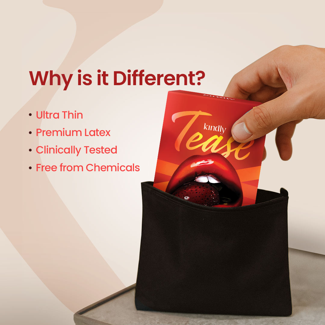 Pre-lubricated for ease of use, Kindly Tease condoms ensure a seamless and enjoyable experience every time. They are free from harmful chemicals like spermicides and parabens, making them perfect for those with sensitive skin.