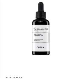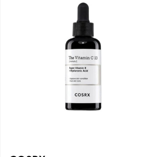 COSRX The Vitamin C 13 serum is a lightweight Vitamin C Booster Serum. Reduce the early signs of aging and improve skin's radiance with this lightweight and hydrating Vitamin C serum. Pure Vitamin C (Ascorbic Acid) helps achieve youthful radiant skin. Super Vitamin E (Tocotrienol) helps fight signs of aging and slow down damage to the skin. Hyaluronic acid provides abundant moisture deep into the skin and helps reduce the appearance of fine lines and wrinkles.
