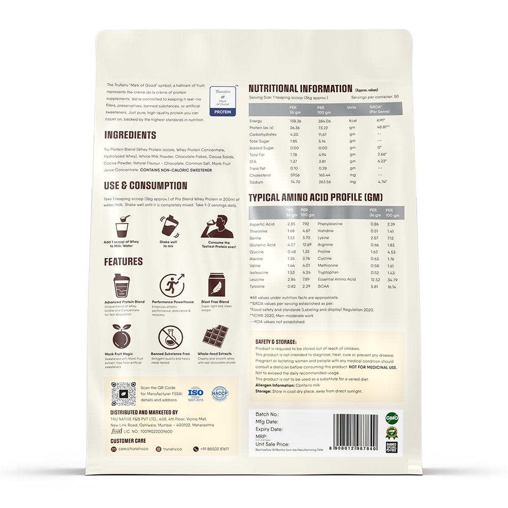 Build strength and recover faster with 26g protein and 6g BCAA per scoop. Made with a premium blend of whey isolate and concentrate, this protein powder is light, clean, and easy to digest. With no added sugar and higher protein absorption, its perfect for lean muscle growth and daily nutrition. Available in exciting flavors like Kesar Badam, Rose Milk, Choco Crunch, Mango, Strawberry and Coffee Mocha for a delicious protein boost anytime.