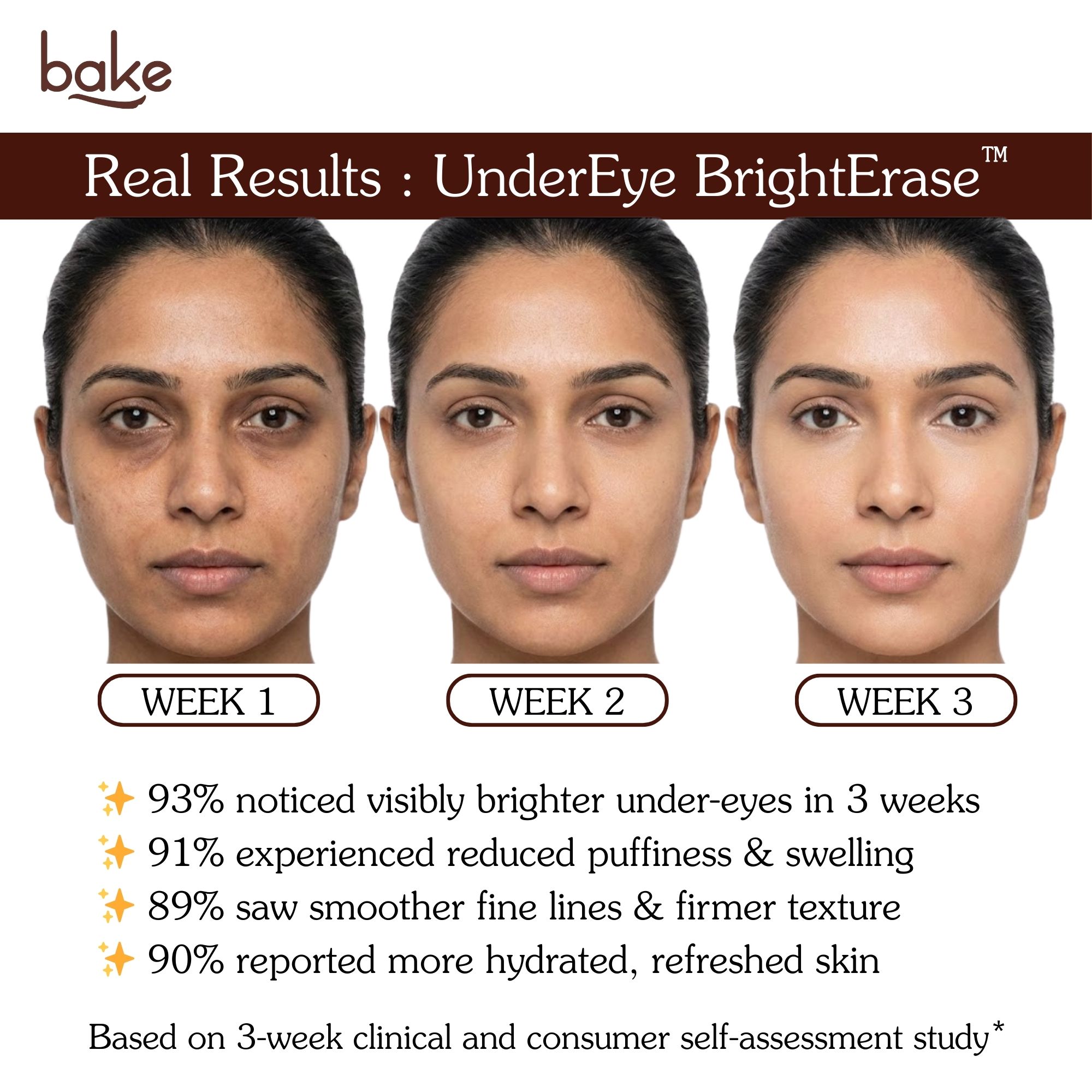 Apply a pea-sized amount on clean, dry skin before bed, gently tap with your ring finger along the orbital bone (avoiding eyelids) until absorbed, and use consistently for 34 weeks for visible brightening.