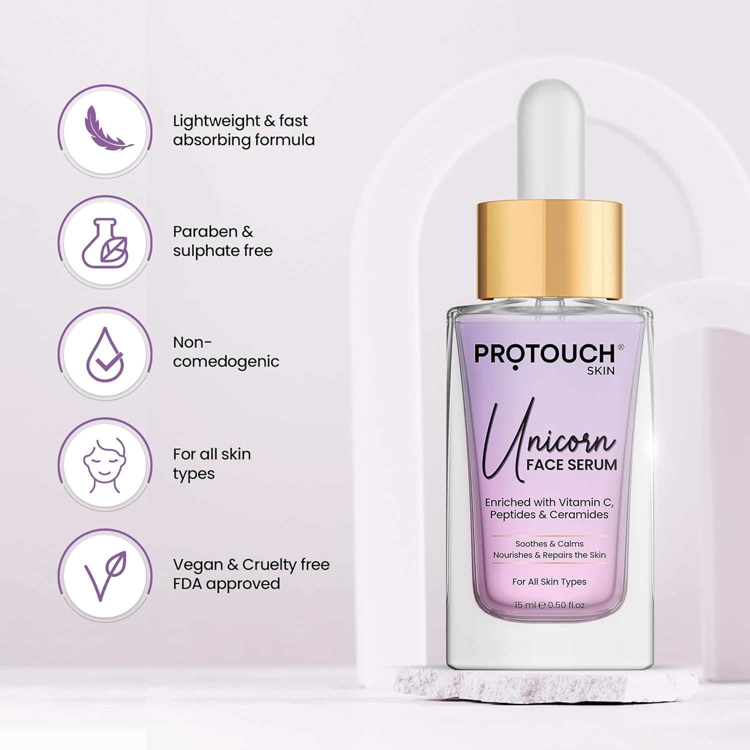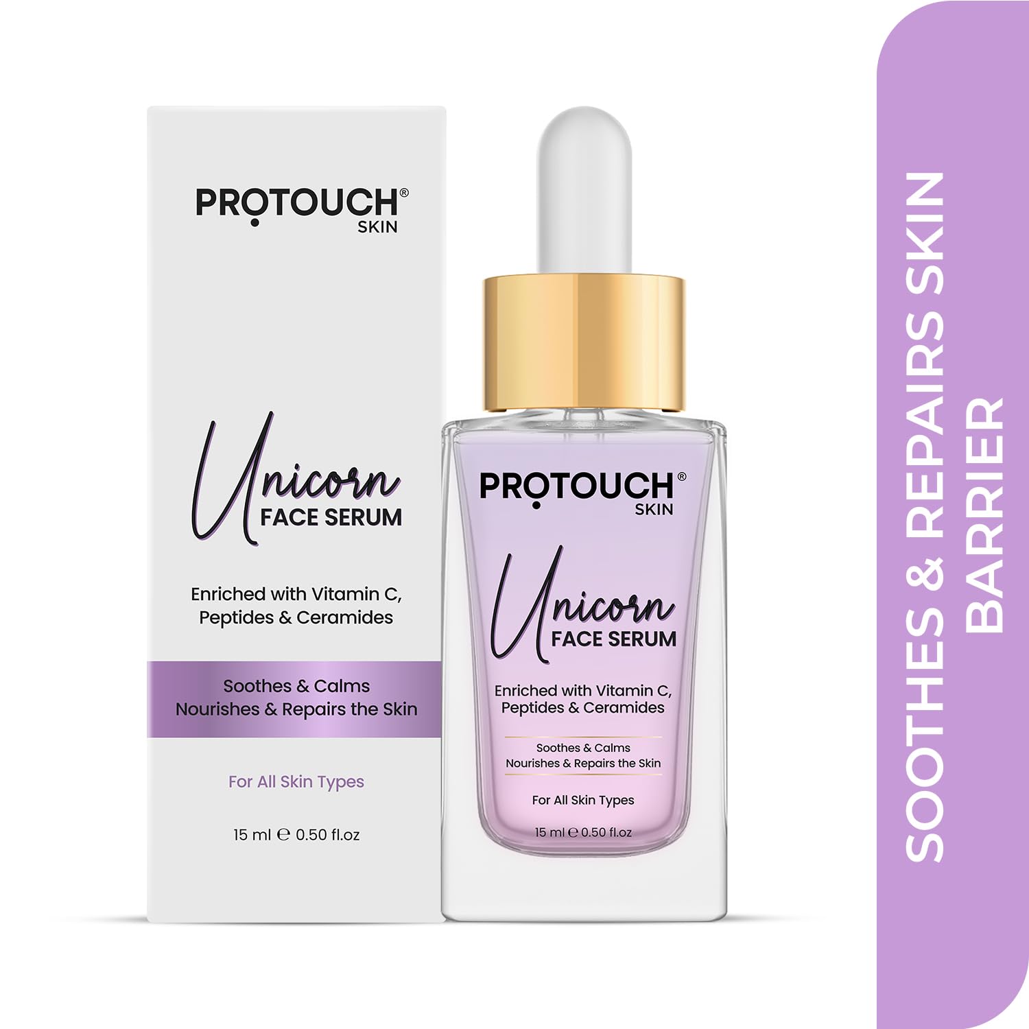 Indulge in the magic of PROTOUCH Unicorn Face Serum, a potent elixir enriched with Vitamin C, peptides, and ceramides. This lightweight and fast-absorbing formula are designed to soothe, nourish, and repair your skin. Suitable for all skin types, our serum is paraben and sulfate-free, non-comedogenic, vegan, cruelty-free, and FDA-approved. Let your skin experience the enchantment of restoration, elasticity, and a radiant glass-like glow.