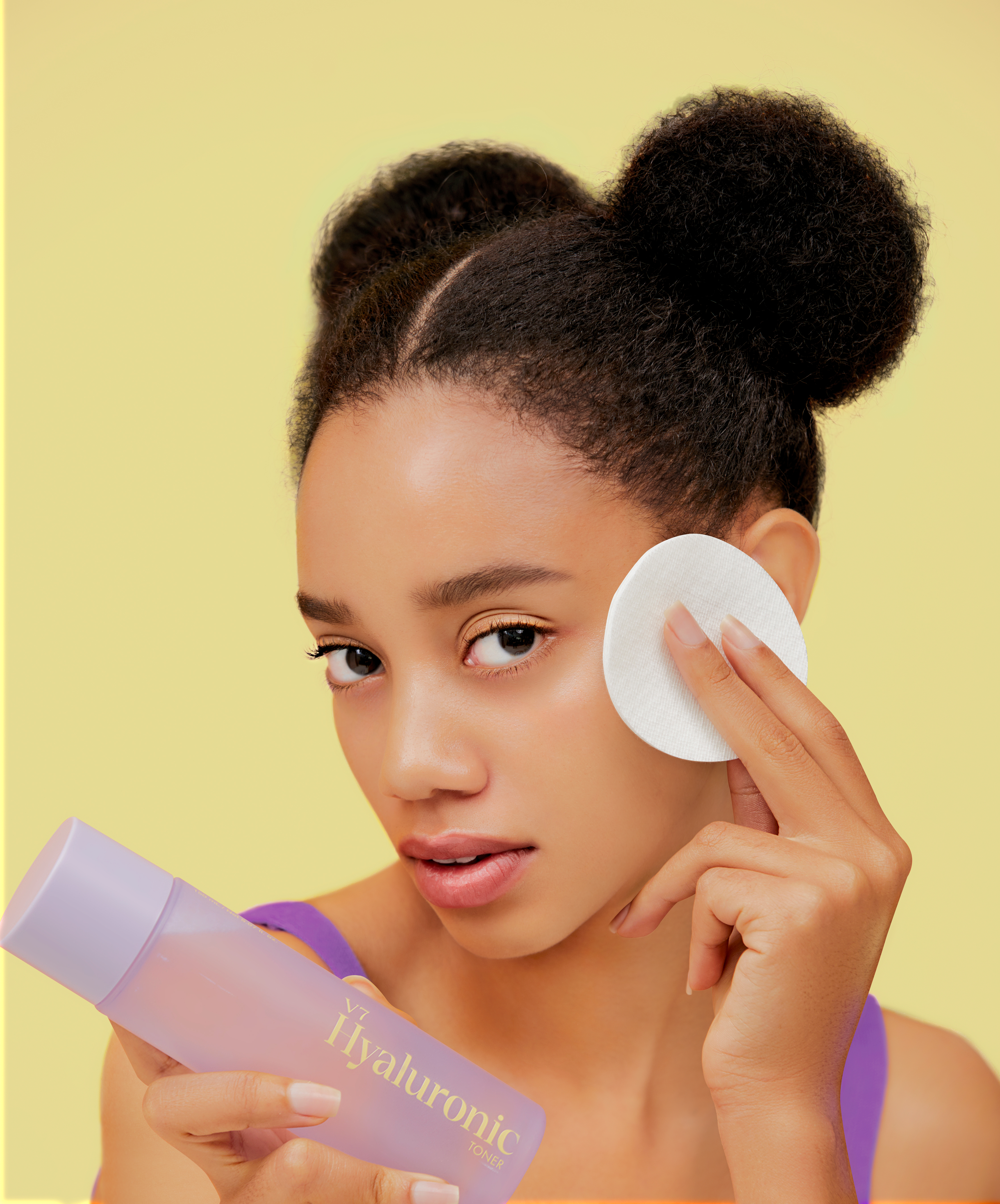 Apply It's Skin V7 Hyaluronic Toner onto a cotton pad or directly onto clean skin, patting gently for hydrated and refreshed skin.