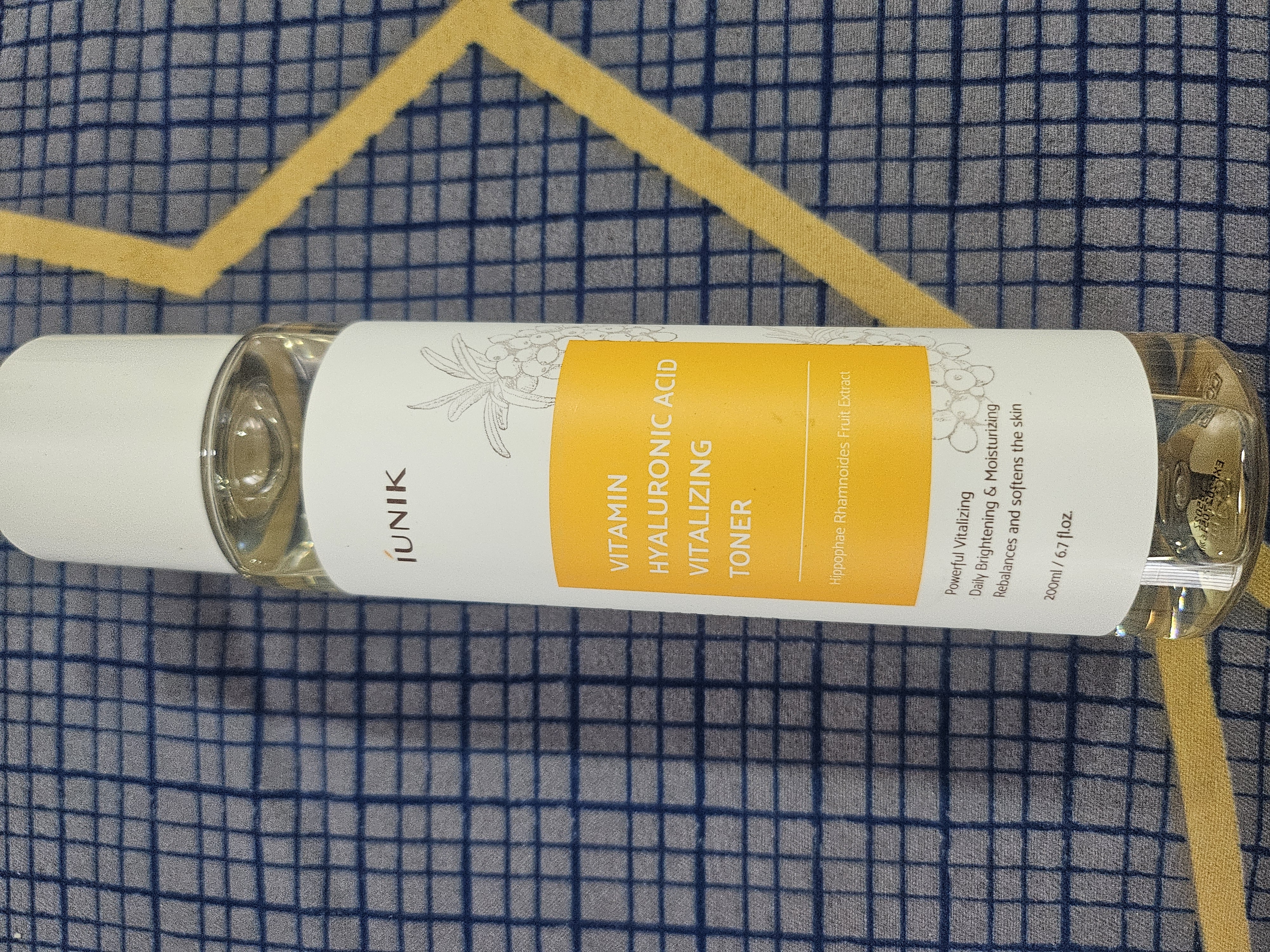Containing 45% hyaluronic acid and 5% hippophae rhamnoides fruit extract, this runny gel-type toner is quickly absorbed by skin and offers moisturizing and brightening benefits.