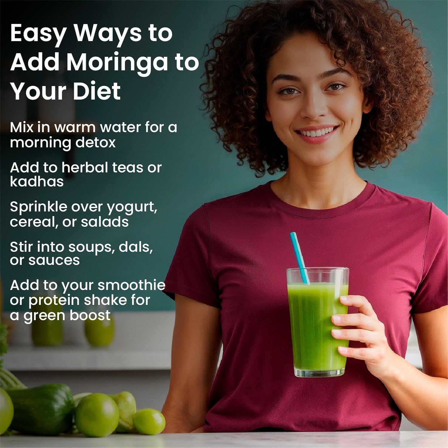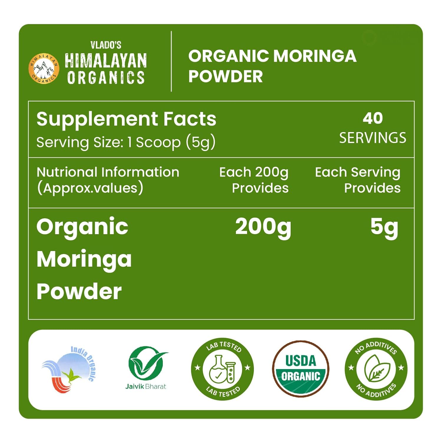 Fuel your body with the pure, nutrient-rich power of Vlados Himalayan Organics Moringa Powder. Sourced from freshly harvested Moringa leaves, this green superfood is a natural powerhouse of vitamins, minerals, protein, and antioxidants. Packed with all 9 essential amino acids, calcium, iron, and vitamin C, it supports energy, immunity, digestion, and overall vitality.Simply mix it into smoothies, teas, soups, or salads for a quick and effortless boost to your daily nutrition.