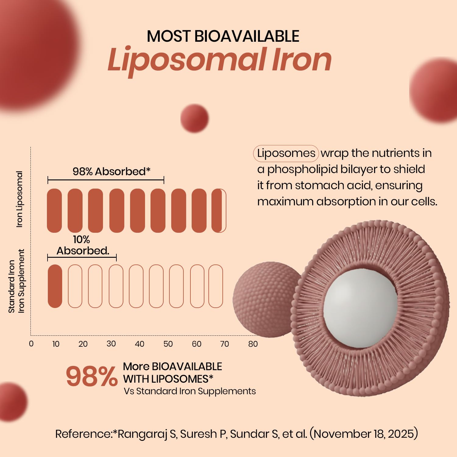 Iron plays an essential role in everyday nutrition, and its absorption is a key factor in effective utilization. Vlados Himalayan Organics Liposomal Iron supplement is formulated using advanced liposomal technology, designed to help protect nutrients during digestion and support better absorption as part of a balanced daily routine. This thoughtfully crafted formula combines Liposomal Iron with Liposomal Vitamin C, Vitamin B12, Zinc, and Folic Acid, creating a synergistic blend of essential nutrients. The liposomal delivery system helps improve nutrient bioavailability while being gentle on the stomach, making it suitable for regular use. Iron is involved in various natural body processes related to energy and vitality, while Vitamin C is widely recognized for supporting iron absorption. Vitamin B12 and Folic Acid contribute to normal metabolic functions, and Zinc plays a role in overall nutritional balance. Together, these nutrients support daily wellness and nutritional adequacy. Designed for both men and women, this supplement fits easily into modern lifestyles, whether supporting plant-based diets, addressing everyday nutritional gaps, or maintaining overall well-being. The liposomal format allows for efficient nutrient delivery without compromising digestive comfort. Vlados Himalayan Organics Liposomal Iron with Vitamin C, B12, Zinc & Folic Acid comes in 100 veg tablets, offering a convenient and consistent way to include essential micronutrients in a daily wellness routine.LIPOSOMAL IRON FOR DAILY ENERGY & VITALITY SUPPORT: Vlados Himalayan Organics Liposomal Iron supplement for men and women is formulated with Liposomal Vitamin C to support efficient iron absorption and utilization. Designed to complement daily nutrition, this formula supports natural energy levels, mental focus, immune function, and overall vitality. The liposomal delivery system helps enhance nutrient bioavailability while remaining gentle on digestion, making it a convenient addition to a balanced wellness routine.
