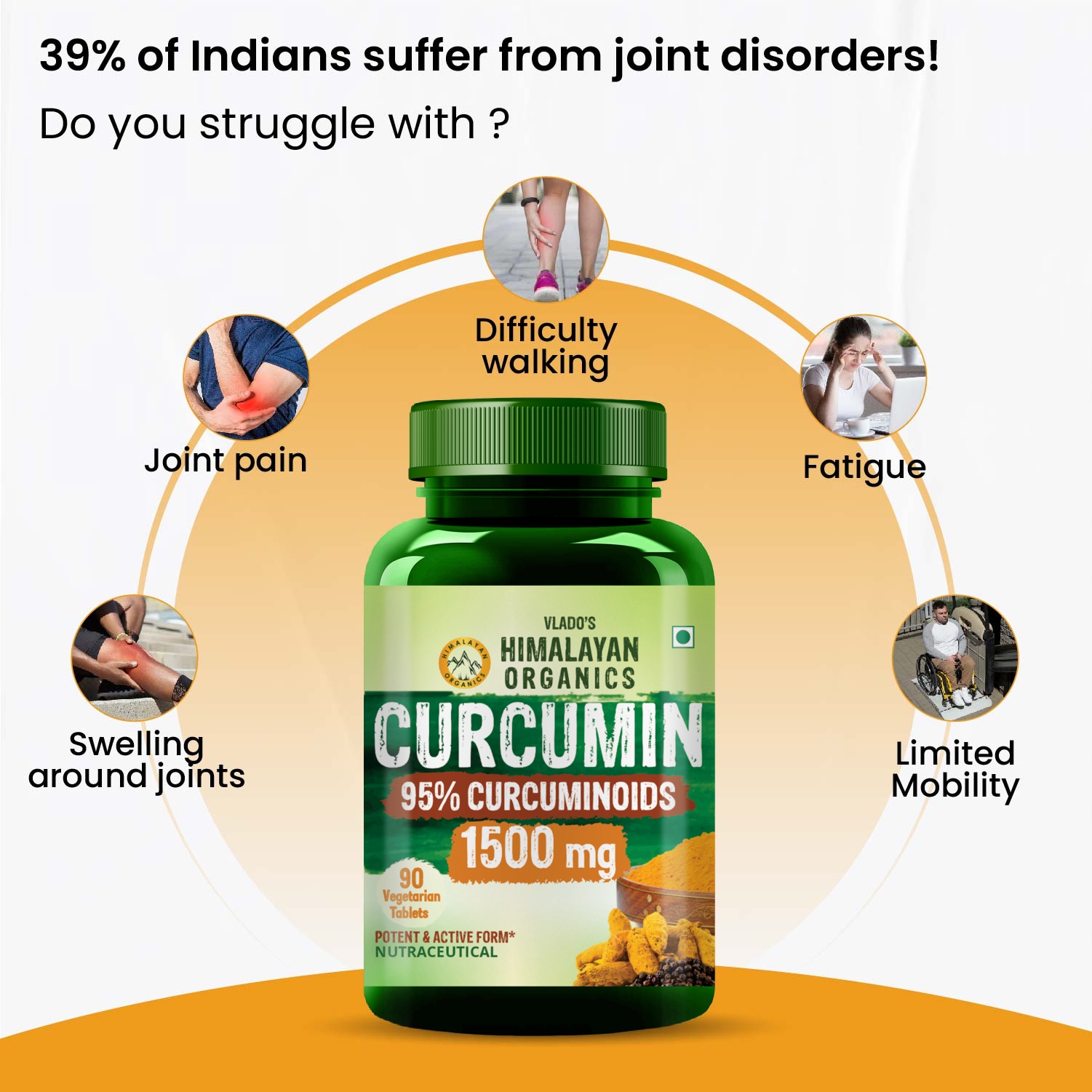 Himalayan Organics brings to you Curcumin with Bioperine Supplement for stronger immunity and better overall health. Curcumin is a polyphenol from Curcuma longa (turmeric plant) used in medicines since ancient times for various health purposes. Himalayan Organics Curcumin is derived from turmeric, unlike other products containing lab-created synthetic curcumin that provides relief from joint pain, stiffness, and inflammation. The curcumin in this dietary supplement is naturally derived from the turmeric root, combined with patented Bioperine black pepper extract, which effectively improves the bioavailability. Bioperine increases absorption by as much as 4X, making it much more effective than other formulae. Experience the dual power of curcumin and piperine for double strength and immunity!