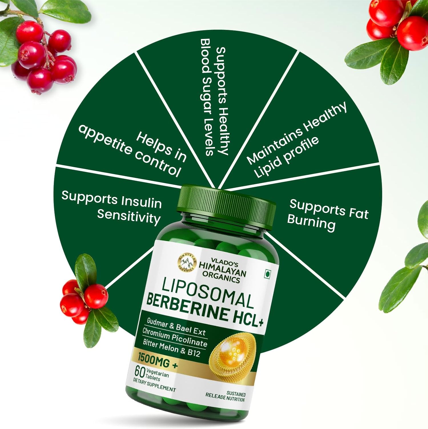 Liposomal Berberine,Bitter Melon, Bael, Gudmar & Vitamin B12,Piperine,Chromium picolinate