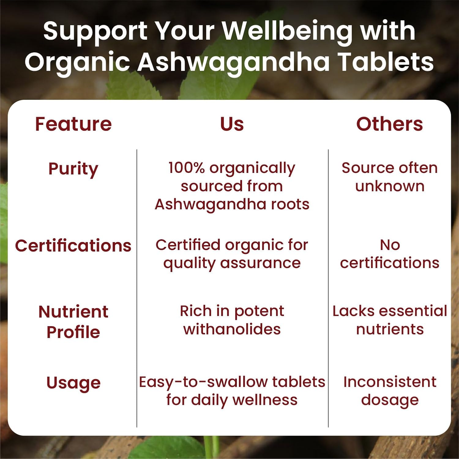 Vlados Himalayan Organics Ashwagandha Tablets are made with pure Ashwagandha root extract to help you achieve natural balance in mind and body. Each serving provides 1200 mg of high-potency, organically certified Ashwagandha known for its adaptogenic benefits that helps reduce stress, helps improve sleep, supports cognitive function, and helps improve stamina. Free from harmful additives and preservatives, these tablets are safe, vegetarian-friendly, and designed to support immunity, energy, and overall wellness.