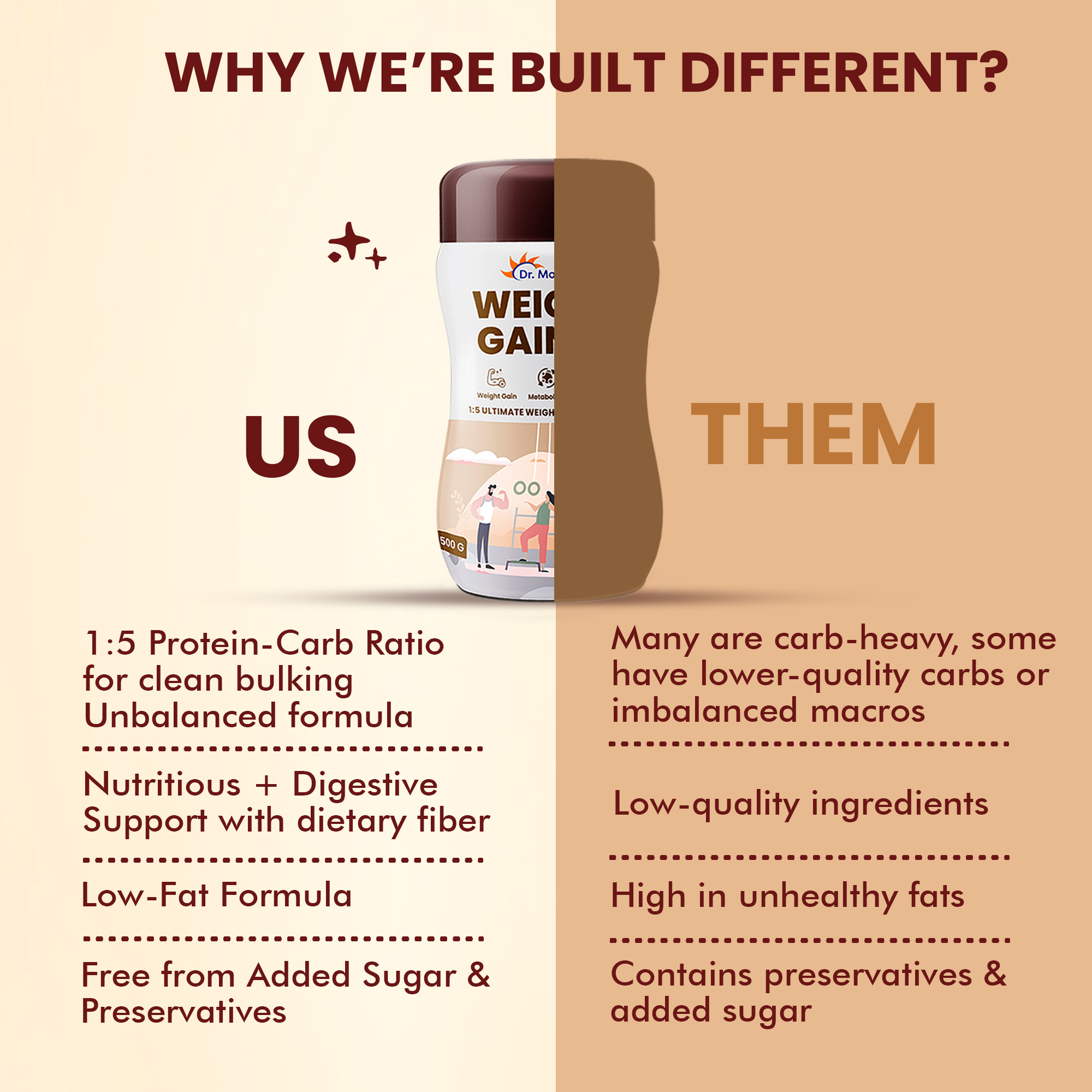 In a world full of fast-food, packing on some extra calories isn't hard, but gaining weight as body fat isn't very healthy as well. Dr. Morepen Weight Gainer contains a mix of high-quality, proteins and complex-carbs in the proportion of 1:5, making it beneficial for healthy weight & muscle mass gaining. The healthiest way to gain most of your weight is through packing on muscle growth rather than fat. While exercise and food are important for gaining muscle, Dr. Morepen Weight Gainer will provide you those extra calories and protein, which will further allow you to exercise harder and develop a great physique. This weight gain supplement is 100% vegetarian, and contains fats, minerals & vitamins and other vital nutrients apart from carbs and protein. Available in premium Irish chocolate flavor, this weight gainer will help you achieve your mass gaining goals.