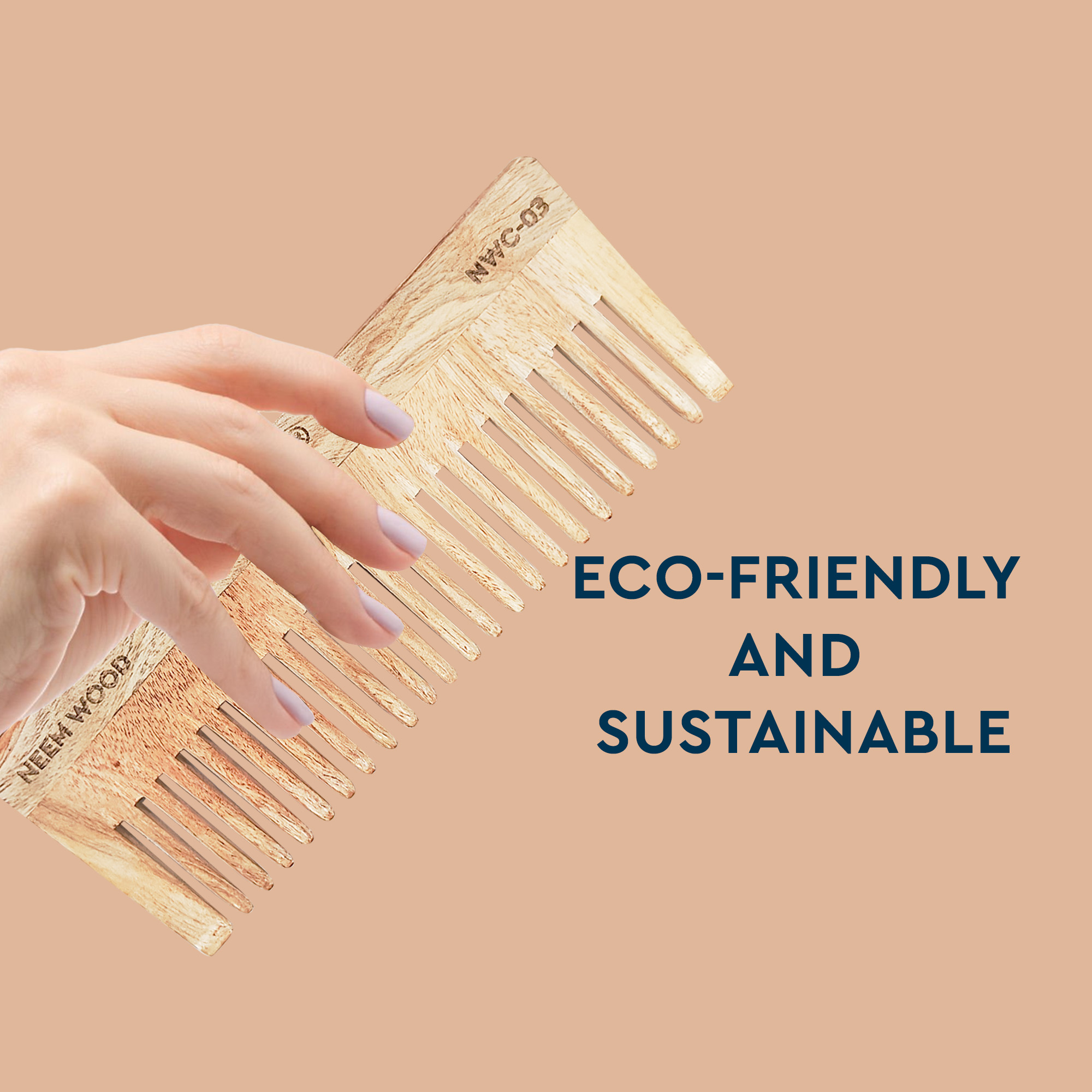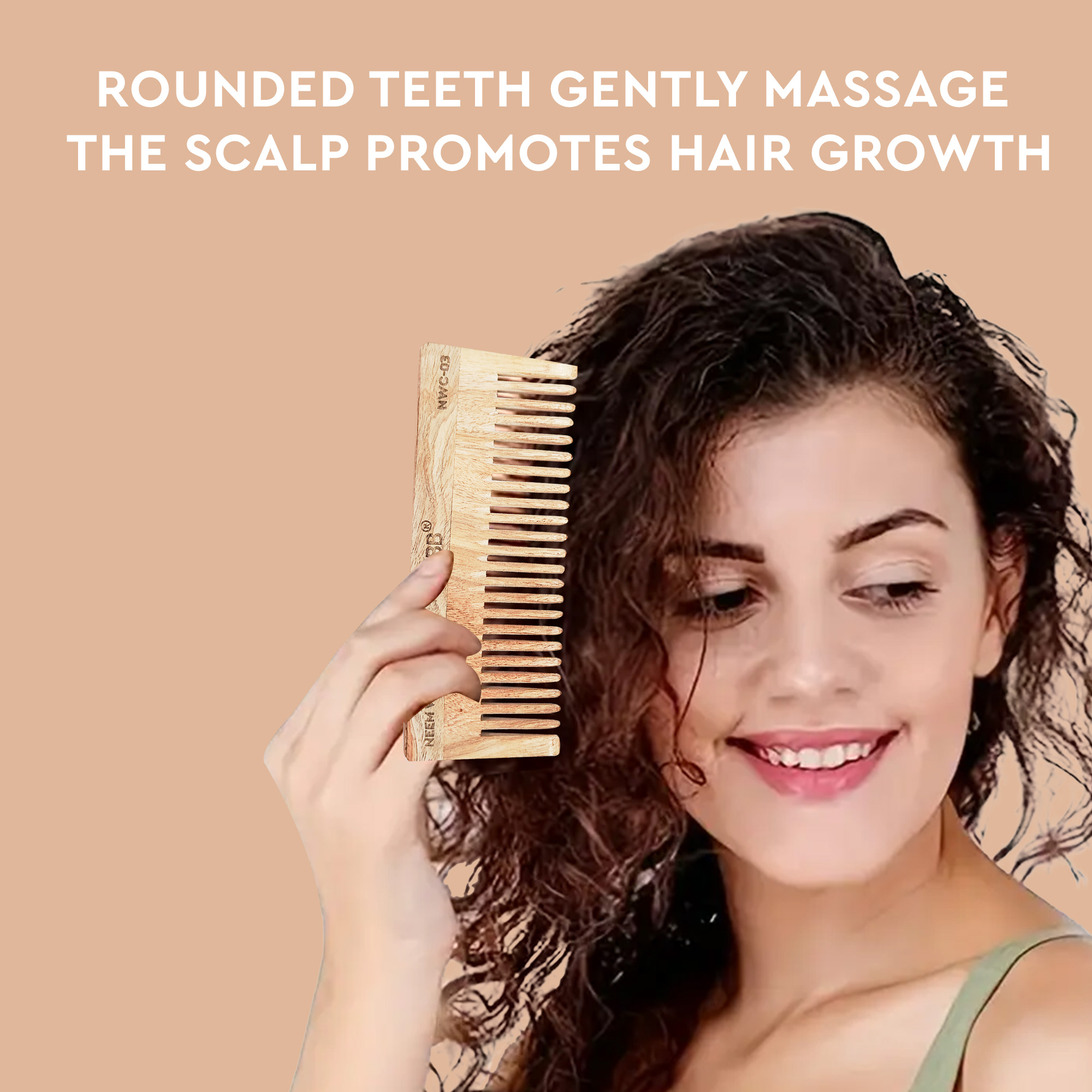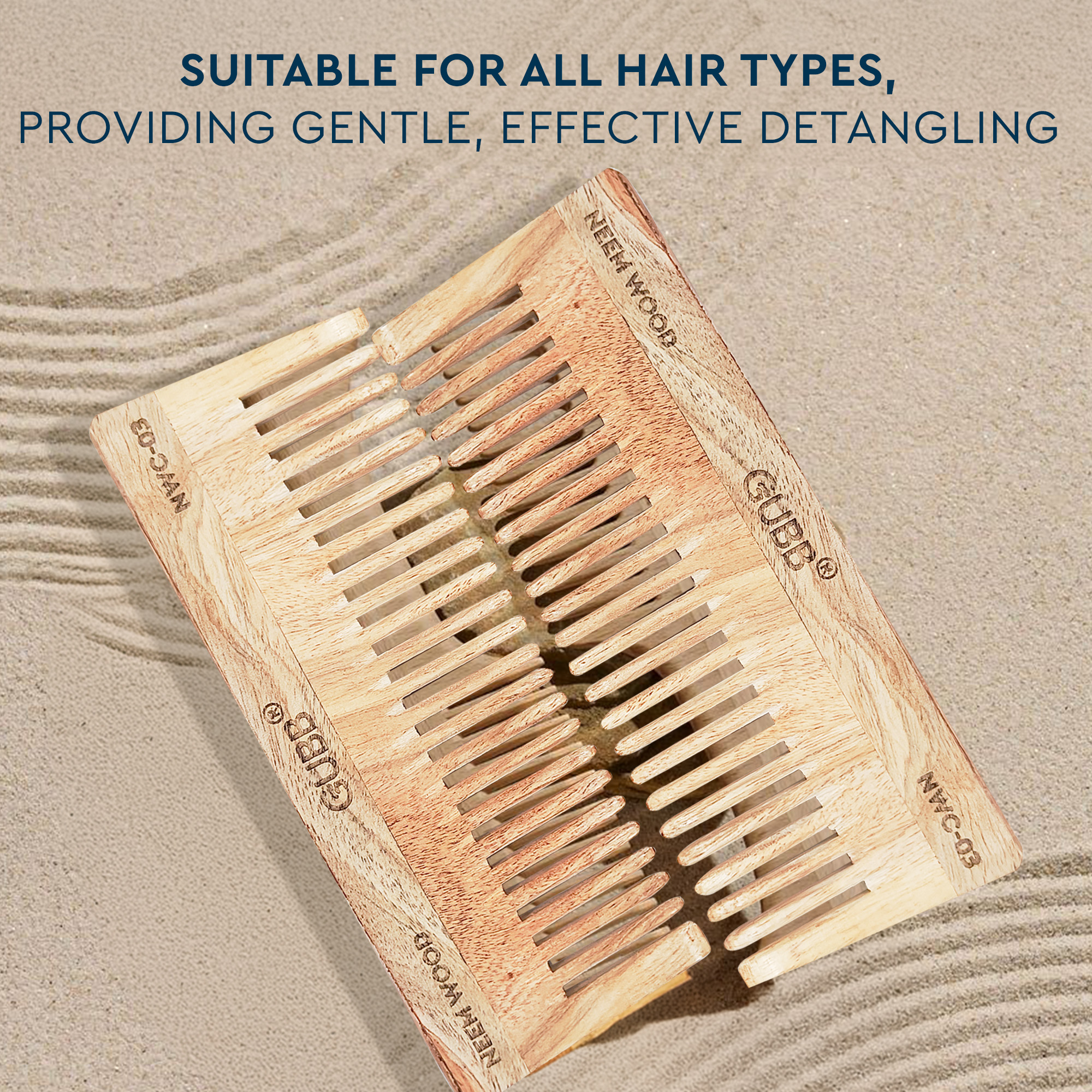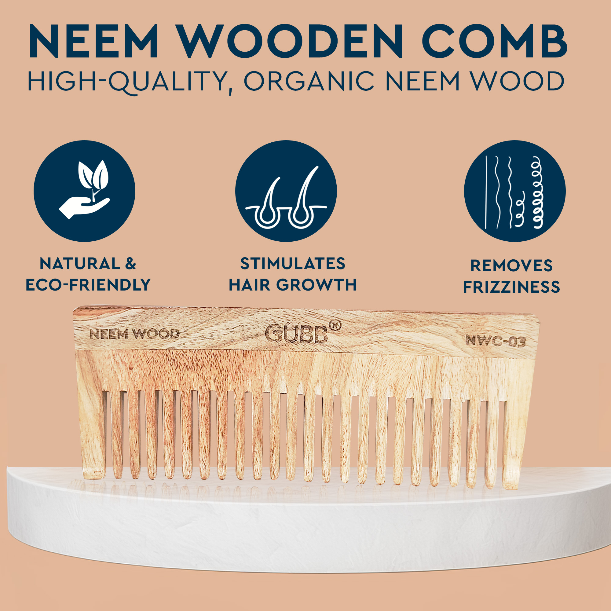 Experience the natural benefits of the GUBB Wide Teeth Neem Wood Comb NWC-03, expertly designed to care for your hair and scalp. Made from 100% natural neem wood, this comb is renowned for its antimicrobial properties, helping to maintain a healthy scalp and prevent dandruff and infections. The wide teeth design is perfect for detangling thick, curly, and wavy hair without causing breakage or discomfort.