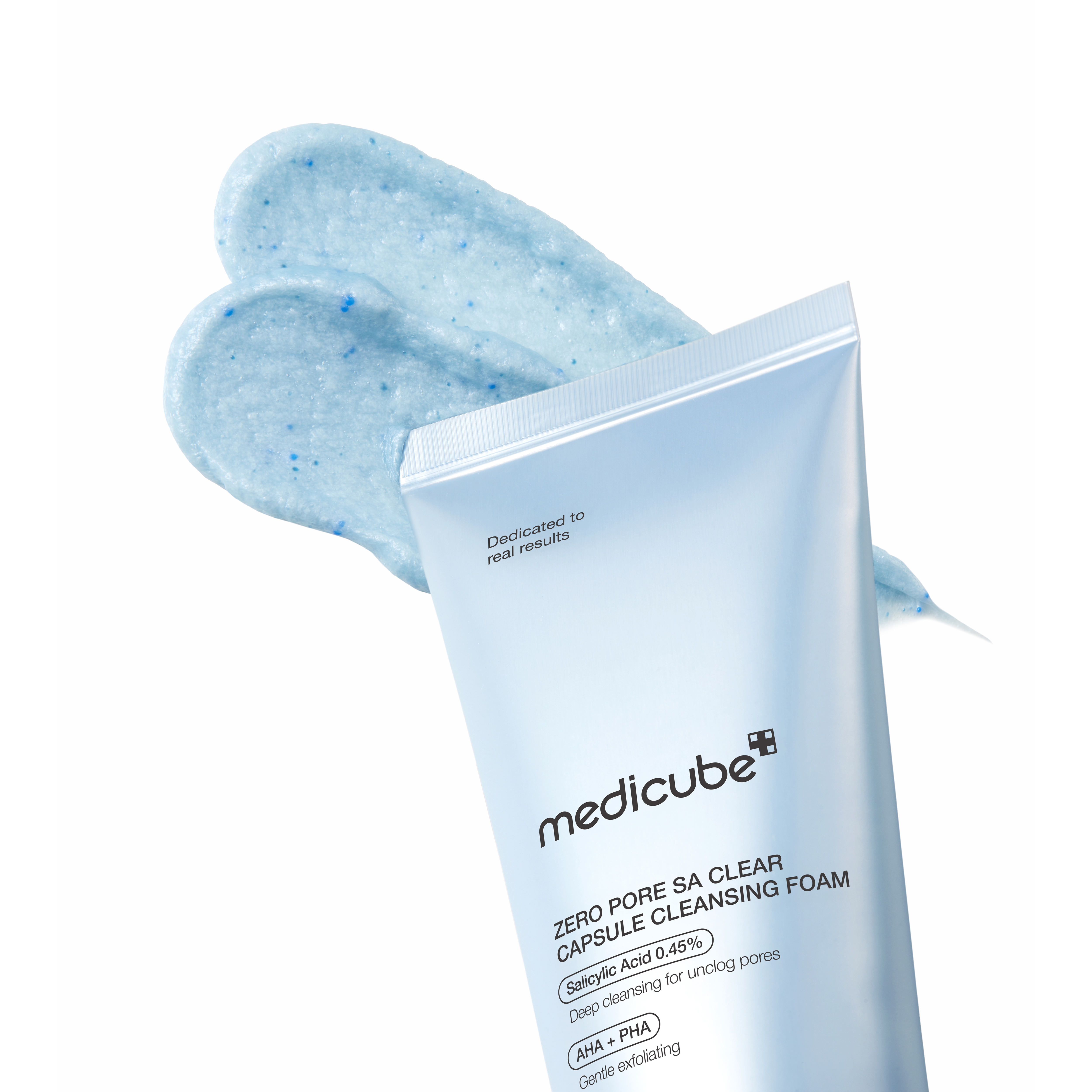 Discover clearer, smoother skin with the medicube Zero Pore SA Clear Capsule Cleansing Foam (120 g). Powered by micro-blue exosome capsules, this skin-smoothing cleanser lifts away blackheads, excess sebum, and impurities for a clearer complexion. Formulated with BHA and salicylic acid to help dissolve pore-clogging buildup, along with AHA and PHA to smooth rough, uneven texture, the medicube cleansing foam has a gentle yet effective cleanser, delivering powerful purification without compromising comfort. Proven to remove pore-clogging impurities and improve dead skin cells with a single wash, this pore-cleansing foam leaves the skin soft, refined, and glowing.