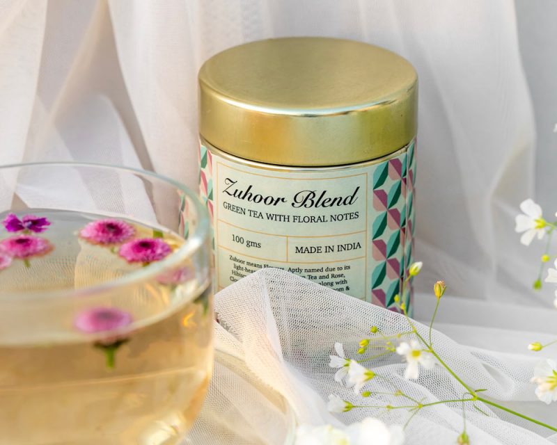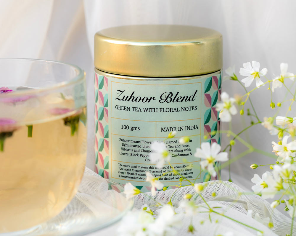 An exhilarating blend of warm spices, green tea and flowers evoking teas Indian roots. Striking the perfect balance of warm spices, green tea and flowers Sukoons Zuhoor blend is an unforgettable taste experience. Enlisting fennel seeds, paan leaves, beetle nut and other aromas to take you on a journey through Indian roots, this brew weaves a beguiling fragrance that helps you relax after a long days work.